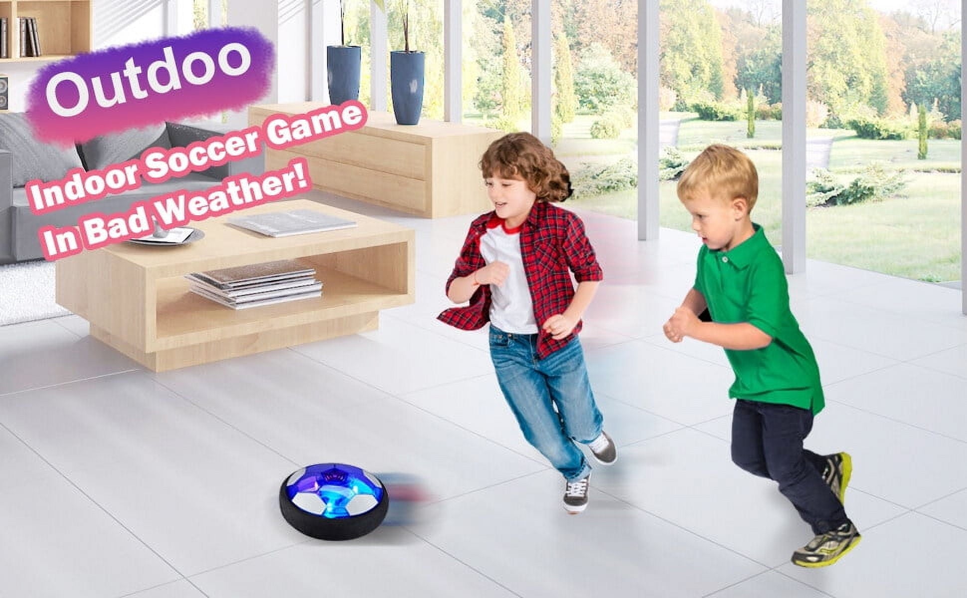 - Feature:1.Versatile Gameplay: The hover soccer ball offers versatility, allowing you to play both indoors and outdoors on any flat surface. Whether you have a spacious living room or a backyard, this game can be enjoyed in a wide range of locations, bringing fun to any environment.2.All-age Appeal: Designed to cater to different age groups, the air power hover ball is perfect for the whole family. From three-year-old children to older individuals, it provides a fantastic opportunity for generations to come together and enjoy quality time. It promotes inclusiveness and creates a sense of unity.3.Enhanced Excitement: Take fun to the next level with the air floating soccer ball's built-in LED multi-color lights. The mesmerizing light display adds an extra thrill to the game, especially during nighttime play. The captivating visual element ignites excitement and makes every match an exhilarating experience.4.Creative Freedom: The hover ball encourages creativity and adaptability. You can customize the gameplay to suit your preferences and style. Whether you prefer pushing it with your hands or kicking it with your feet, standing up or sitting down, this game offers endless possibilities for play, allowing you to unleash your imagination.5.Easy and Enjoyable: With its user-friendly design, the floating soccer is incredibly easy to use. No special skills or training are required. Simply switch it on, and you're ready to start playing. The straightforward setup and controls ensure instant entertainment and enjoyment, making it accessible to everyone.