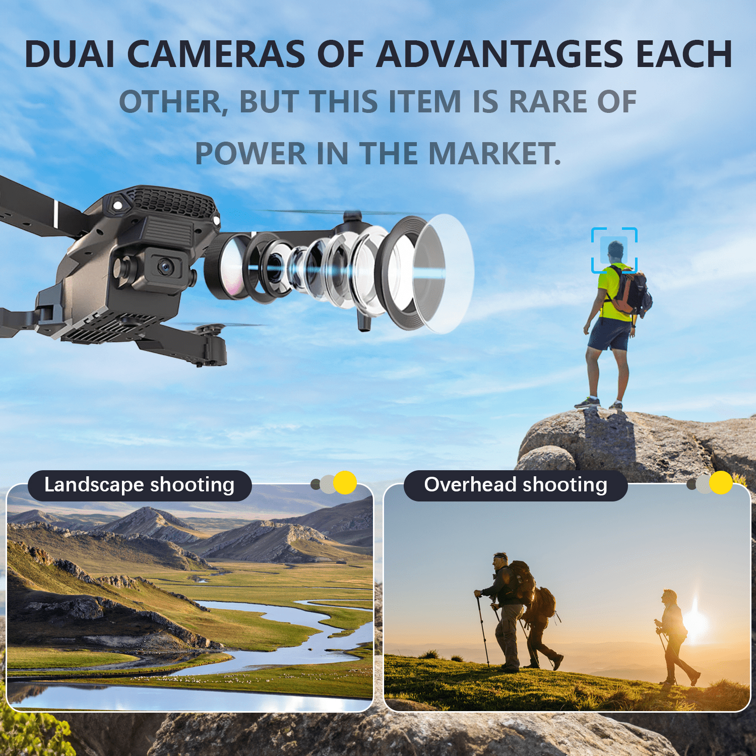 • foldable drone is equipped with an 120 ° manually adjustable 1080P high-definition camera, which can expand the shooting angle and meet more photography needs. Through the FPV function, it can transmit images in real-time to the mobile app, and you can control the drone to take photos or videos with gestures.