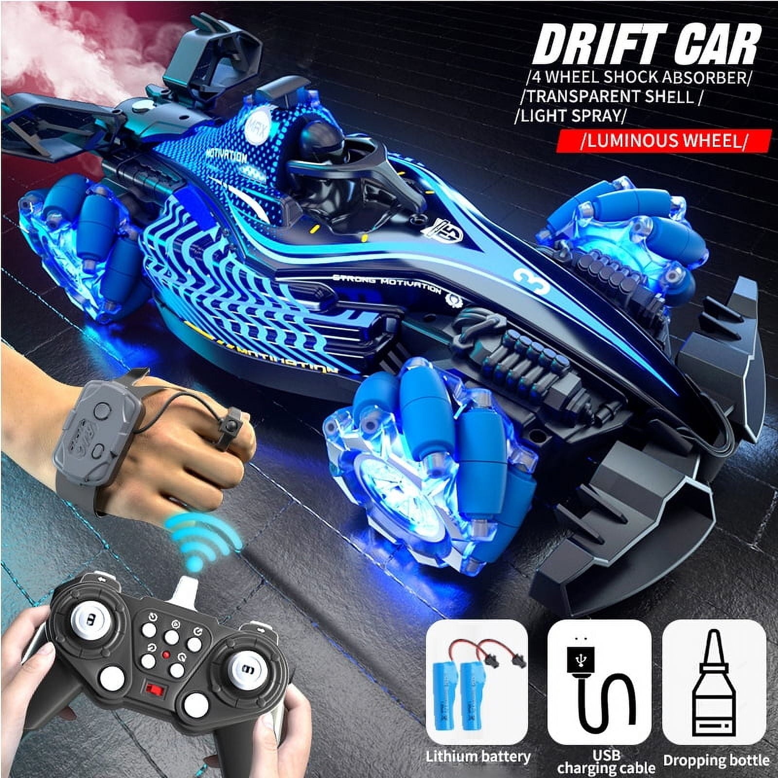 RC Car Formula Stunt Spray RC Racing Car Gesture Sensor Intelligent RC Car 360 Degree Roation Drift Vehicle Cool One Key Spin in Place Remote Control Car