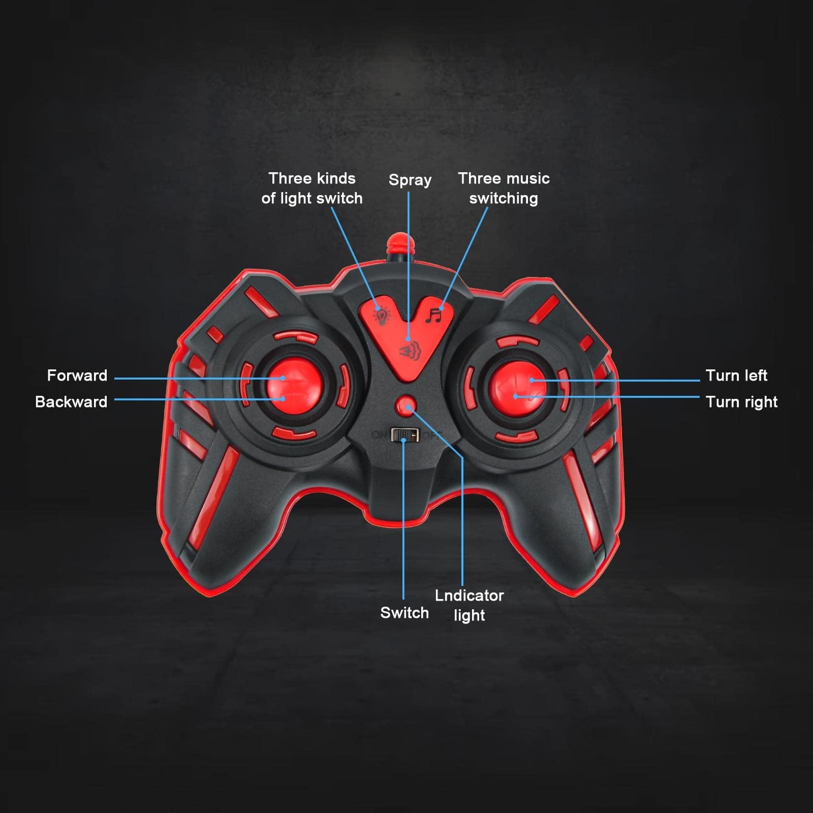 1:16 Realistic Scale High Speed RC Cars: The remote control truck is equipped with a fast brushed RC motor, which can produce more horsepower for the RC cars. RC truck can go up to 20+Km/h at full speed with the powerful built-in motor. Make operators in marvelous enjoyment. 2.4Ghz Non-Jamming Race Car: The toy truck is equipped with Easy-to-use non-interference remote controller with 2.4GHz frequency makes the car always ready to run and has non-jamming function. The radio control distance is about 260 feet, No worries to run this remote control cars on grassland , sands, and bumpy grounds. Top Material: The interior of the stunt car is made of nylon (PA), which has both excellent strength and abrasion resistance, allowing it to stand up any sport. The main body is made of ABS material, which has high tensile strength and is very resistant to physical impacts, which allow the finished plastic to withstand heavy use and adverse environmental conditions. Super battery life: Remote Control Shark Spray car comes with two 1200mAh rechargeable batteries that can run for around 80 minutes on a full charge and take about 2.5 hours to full charge. Enjoy in the exciting racing driving and without stopping fun! Functions: Controlling car movement, spray, lights, music multi-function remote control Perfect Holiday Gift for Kids, Rc Car not only cultivate children's hobbies and interests but also cultivate their operation ability with endless joy.if you have any problem about rc cars, please contact with us by email,we will give you a satisfied answer in 24 hours.